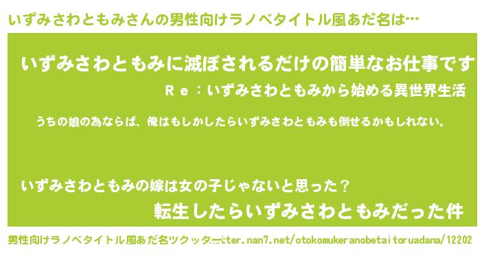 いずみさわともみさんの男性向けラノベタイトル風あだ名をツクッター!