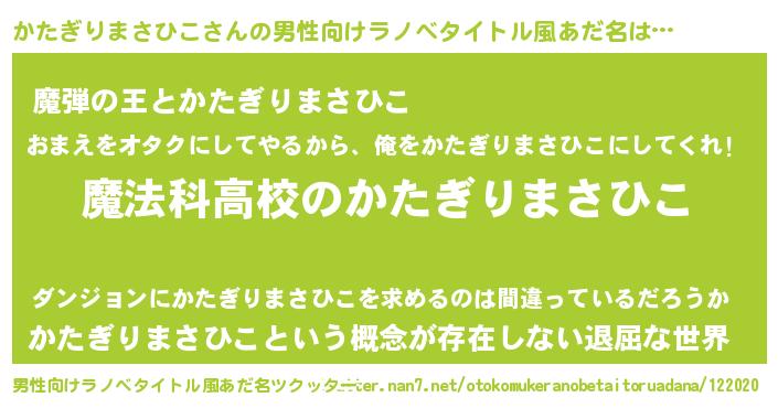 | 女子向けラノベタイトル風あだ名 | 『かたぎりまさひこアンティーク』 |