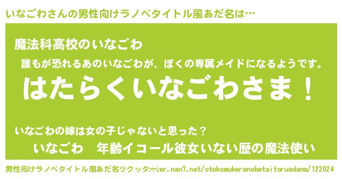 | 女子向けラノベタイトル風あだ名 | 『首の姫と首なしいなごわ』 |