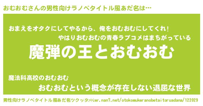 | 意味不明あだ名 | 『住所不定無職おむおむ(8歳)』 |