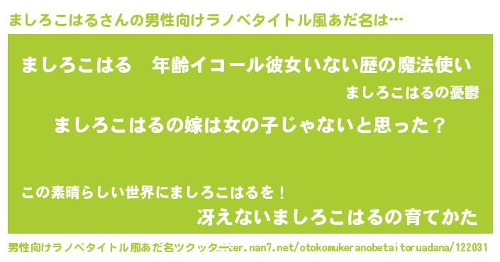 | 女子向けラノベタイトル風あだ名 | 『ましろこはる様がみてる』 |