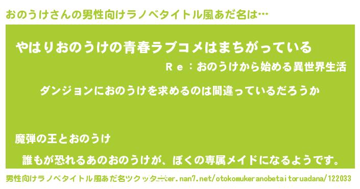 | 意味不明あだ名 | 『とにかく怪しいおのうけ』 |