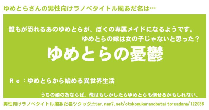 | 女子向けラノベタイトル風あだ名 | 『ゆめとら姫と円卓の騎士』 |
