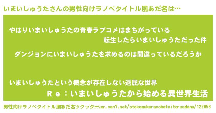 | 女子向けラノベタイトル風あだ名 | 『いまいしゅうたは平凡を望む』 |