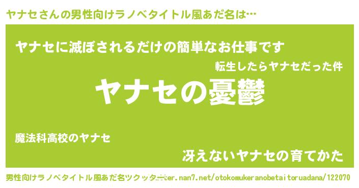 | ファンタジー風あだ名 | 『ヤナフェル』『カークヤナラー』 |