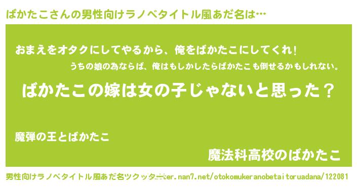 | 胡散臭い通販商品みたいなあだ名 | 『全米が絶賛したサプリメント…その名も「ばかたこ」』 |