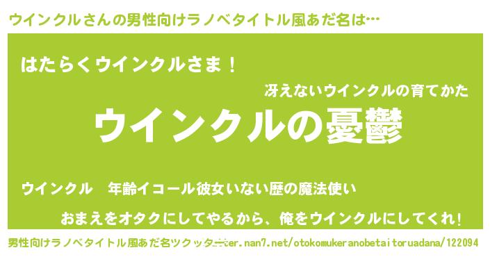 | 女子向けラノベタイトル風あだ名 | 『ウインクル姫と円卓の騎士』 |