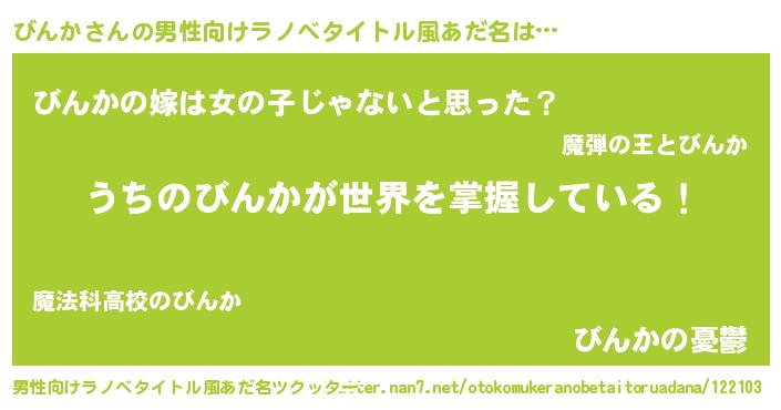 | 胡散臭い通販商品みたいなあだ名 | 『全米が絶賛したサプリメント…その名も「びんか」』 |