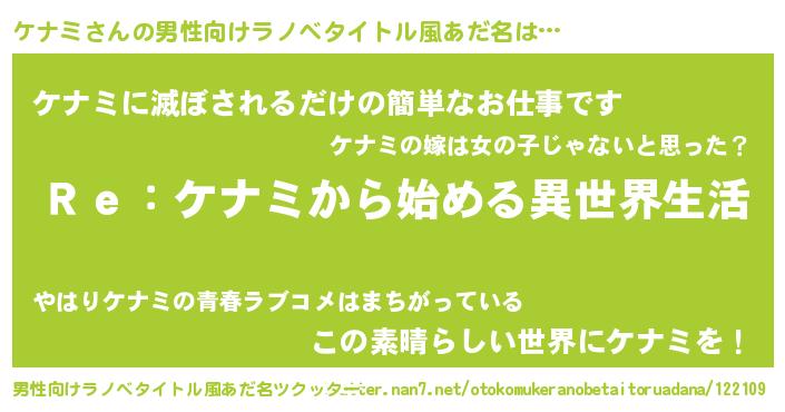 | 女子向けラノベタイトル風あだ名 | 『ケナミストレイドッグス』 |