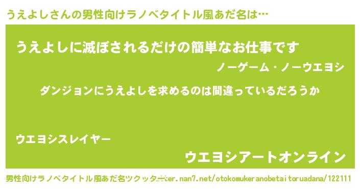 | 女子向けラノベタイトル風あだ名 | 『うえよしは平凡を望む』 |