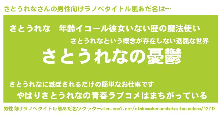 | 女子向けラノベタイトル風あだ名 | 『(仮)さとうれなのやんごとなき事情』 |