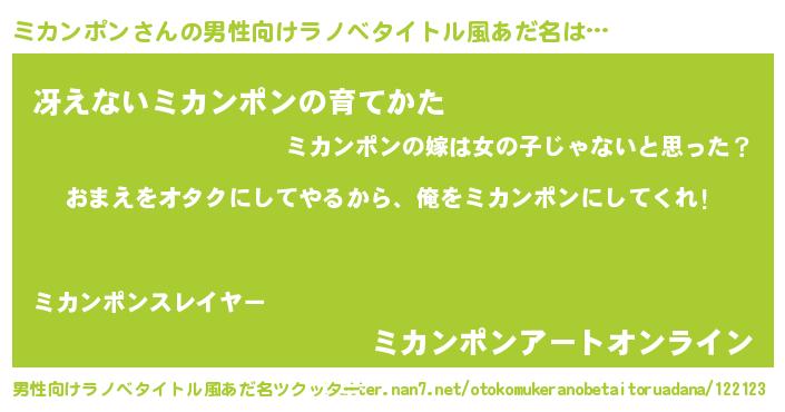 | 女子向けラノベタイトル風あだ名 | 『ミカンポン恋絵巻』 |