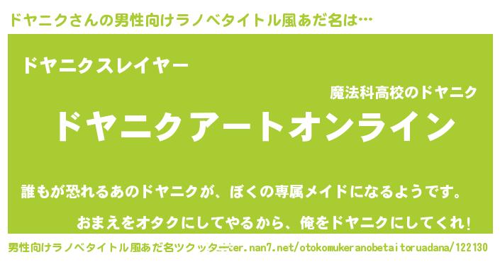 | 意味不明あだ名 | 『ペロリンドヤニク』『自称ドヤニク』 |