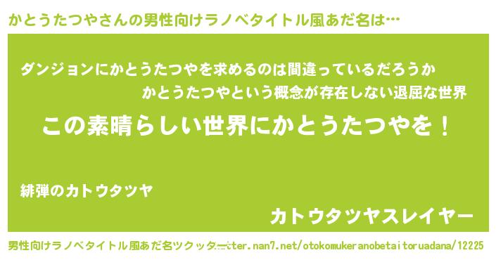 かとうたつやさんの男性向けラノベタイトル風あだ名をツクッター!