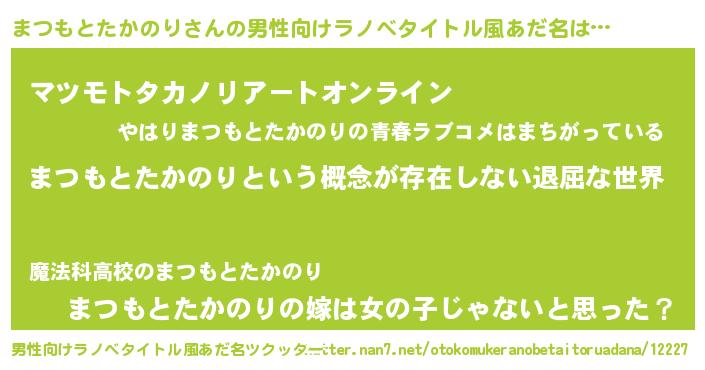 | 意味不明あだ名 | 『永久保存まつもとたかのり』 |
