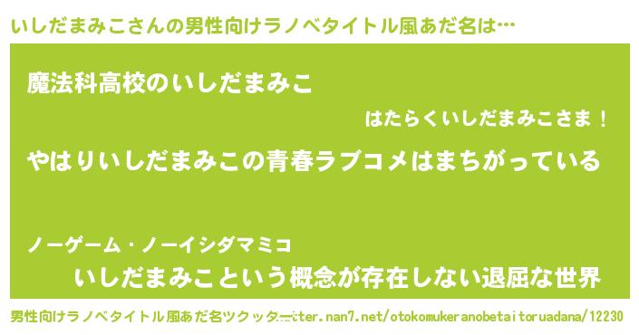 | 女子向けラノベタイトル風あだ名 | 『いしだまみこ伯爵の花嫁』 |