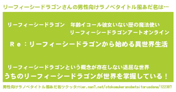 | 恥ずかしいあだ名 | 『リーフィーシードラゴンデラックス』 |