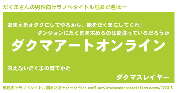 | 胡散臭い通販商品みたいなあだ名 | 『億万長者になれる水晶球…その名も「だくま」』 |