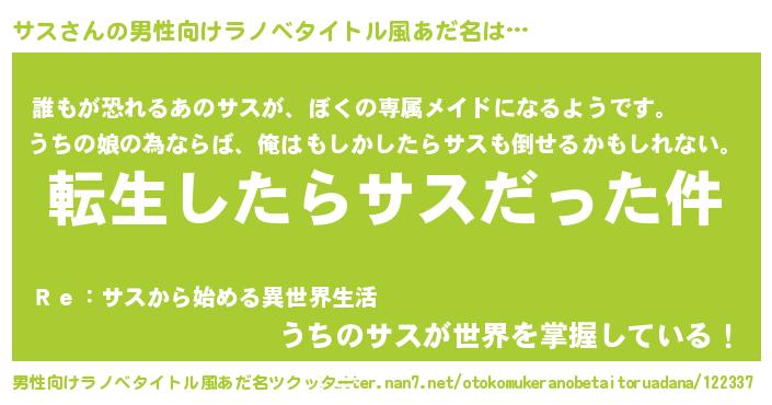 | 女子向けラノベタイトル風あだ名 | 『サスの玉の輿計画!』『サスの婚約者』 |