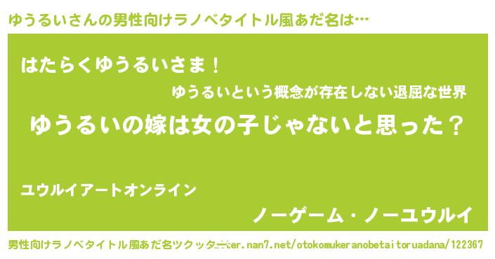 ヘコむあだ名 | 『ゆう太郎』『ゆうるい(震え声)』 |