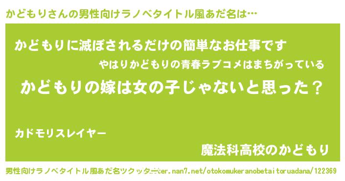 | ヒーロー風カッコイイあだ名 | 『銀牙騎士カド』『サイバー戦士カドモリ』 |