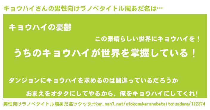 | 胡散臭い通販商品みたいなあだ名 | 『億万長者になれるブレスレット…その名も「キョウハイ」』 |