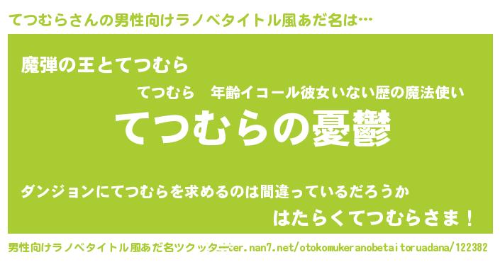 | 女子向けラノベタイトル風あだ名 | 『(仮)てつむらのやんごとなき事情』 |