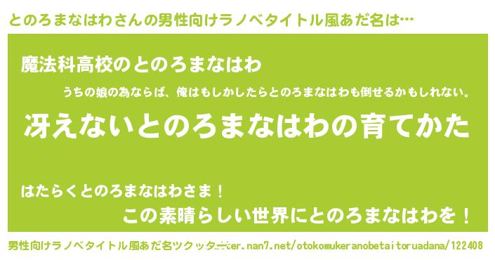 | ヒーロー風カッコイイあだ名 | 『サイバー戦士トノロマナハワ』 |
