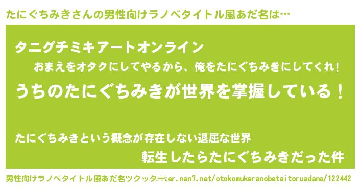 | ヒーロー風カッコイイあだ名 | 『スーパータニグチミキ』『幻影騎士タニ』 |