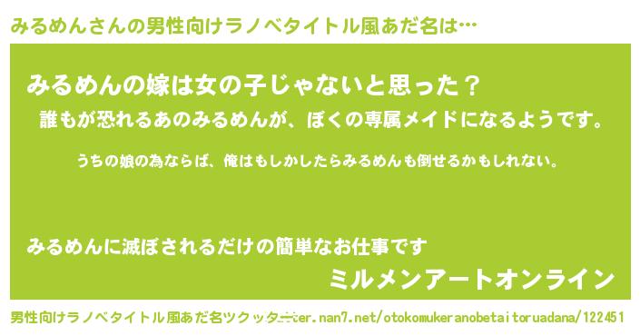 | 女子向けラノベタイトル風あだ名 | 『みるめんの婚約者』 |