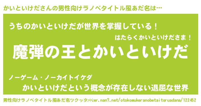 | 意味不明あだ名 | 『住所不定無職かいといけだ(41歳)』 |