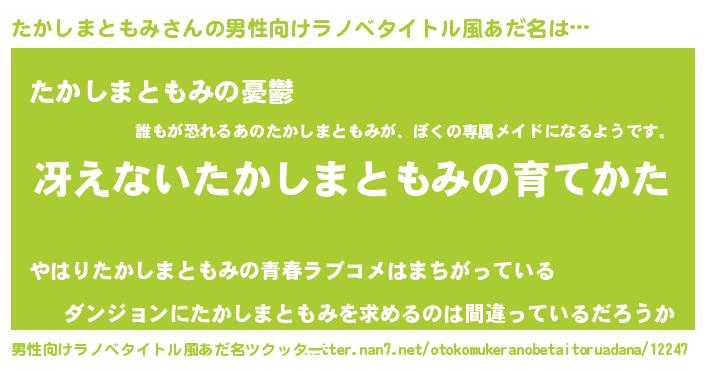 | 胡散臭い通販商品みたいなあだ名 | 『モテモテ間違いなし水晶球…その名も「たかしまともみ」』 |