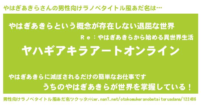 | 胡散臭い通販商品みたいなあだ名 | 『億万長者になれる水晶球…その名も「やはぎあきら」』 |