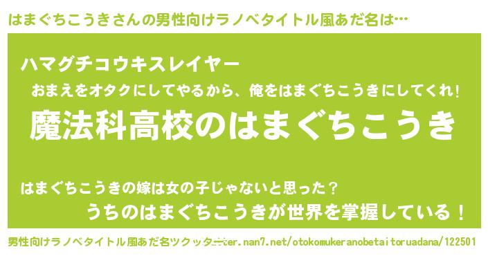 | 女子向けラノベタイトル風あだ名 | 『はまぐちこうきアンティーク』 |