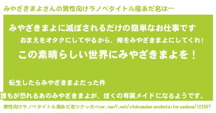 | 意味不明あだ名 | 『住所不定無職みやざきまよ(12歳)』 |