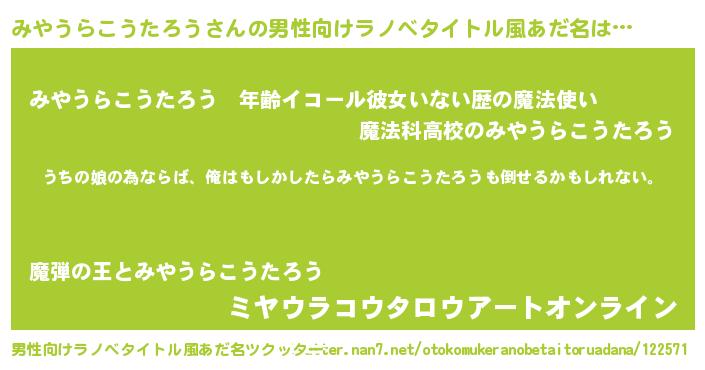 | ファンタジー風あだ名 | 『エターナルミヤウラコウタロウー』 |