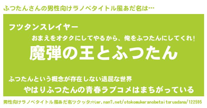 | 女子向けラノベタイトル風あだ名 | 『ふつたんが死なない童話 林檎のふつたんの診療簿』 |