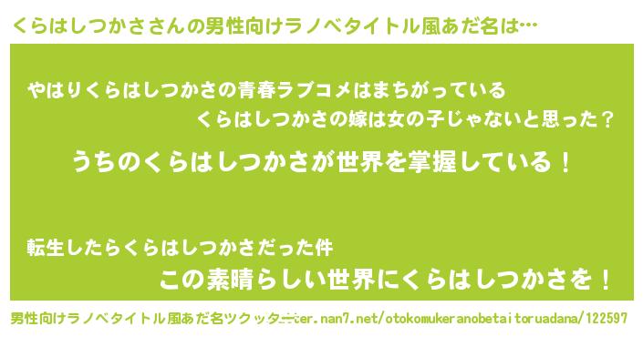 くらはしつかささんの男性向けラノベタイトル風あだ名をツクッター!