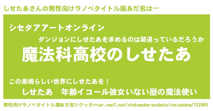 | 女子向けラノベタイトル風あだ名 | 『しせたあアンティーク』 |
