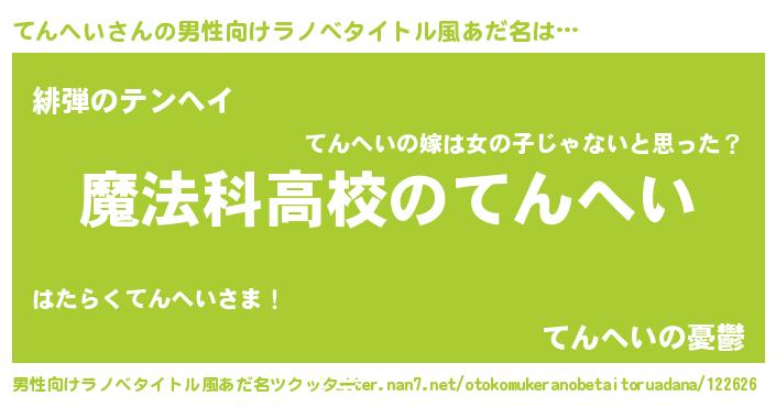 | 女子向けラノベタイトル風あだ名 | 『てんへいなんてお断りですっ。』 |