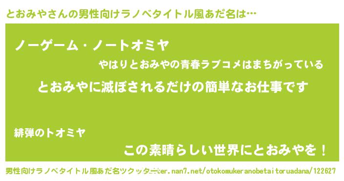 | ヒーロー風カッコイイあだ名 | 『愛の使者とおみや』『仮面トオダー』 |
