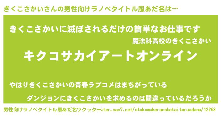 きくこさかいさんの男性向けラノベタイトル風あだ名をツクッター!