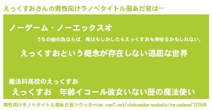 えっくすおさんの男性向けラノベタイトル風あだ名をツクッター!