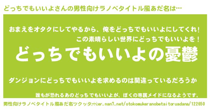| 胡散臭い通販商品みたいなあだ名 | 『必ず成功するブレスレット…その名も「どっちでもいいよ」』 |