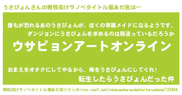 | 胡散臭い通販商品みたいなあだ名 | 『モテモテ間違いなし水晶球…その名も「うさぴょん」』 |