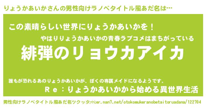 | 女子向けラノベタイトル風あだ名 | 『シンデレラりょうかあいか家の靴箱館』 |