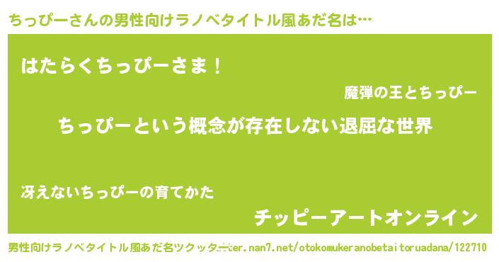 | 胡散臭い通販商品みたいなあだ名 | 『絶対に幸福をもたらす健康食品…その名も「ちっぴー」』 |