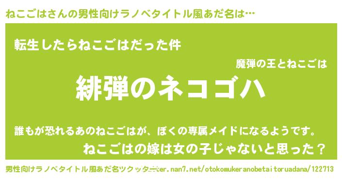 | 胡散臭い通販商品みたいなあだ名 | 『信頼と実績のペンダント…その名も「ねこごは」』 |