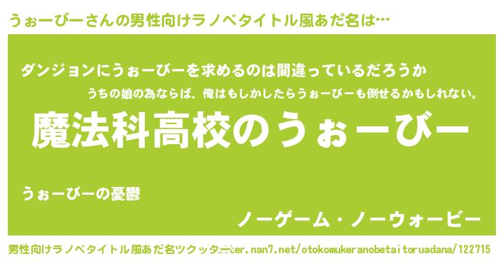 | 女子向けラノベタイトル風あだ名 | 『うぉーびーなんてお断りですっ。』 |