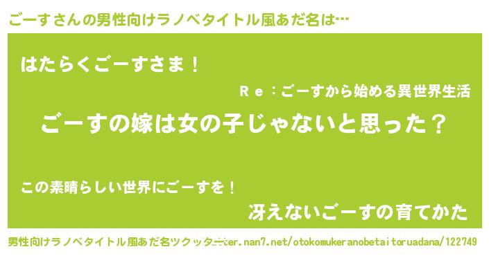 | 女子向けラノベタイトル風あだ名 | 『ごーす様がみてる』『闇のごーす』 |